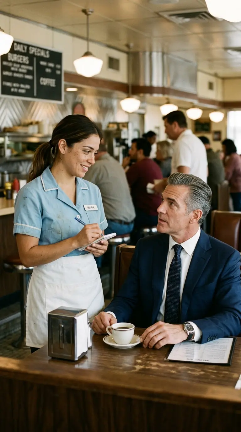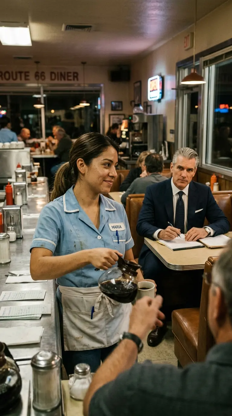 A Waitress Helped an Old Man Every Day — One Day, 10 Black Cars Pulled Up and His Lawyers Walked In