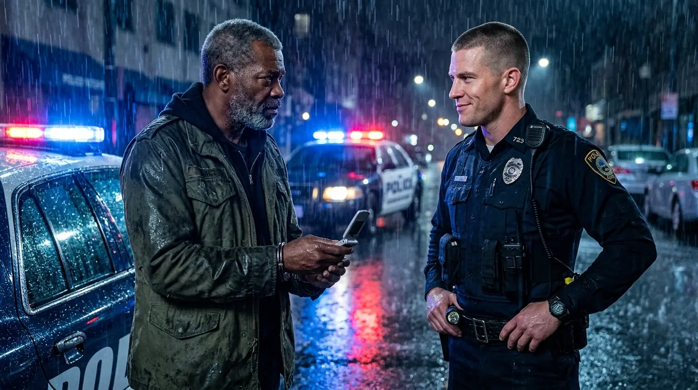 Inside the diner, Lorraine Kemp watches through the rain-streaked window, arms crossed. See, she was right to call. He was trouble. Some people just don’t belong in nice establishments. She’ll tell this story for weeks, how her instinct saved her customers from a dangerous vagrant.