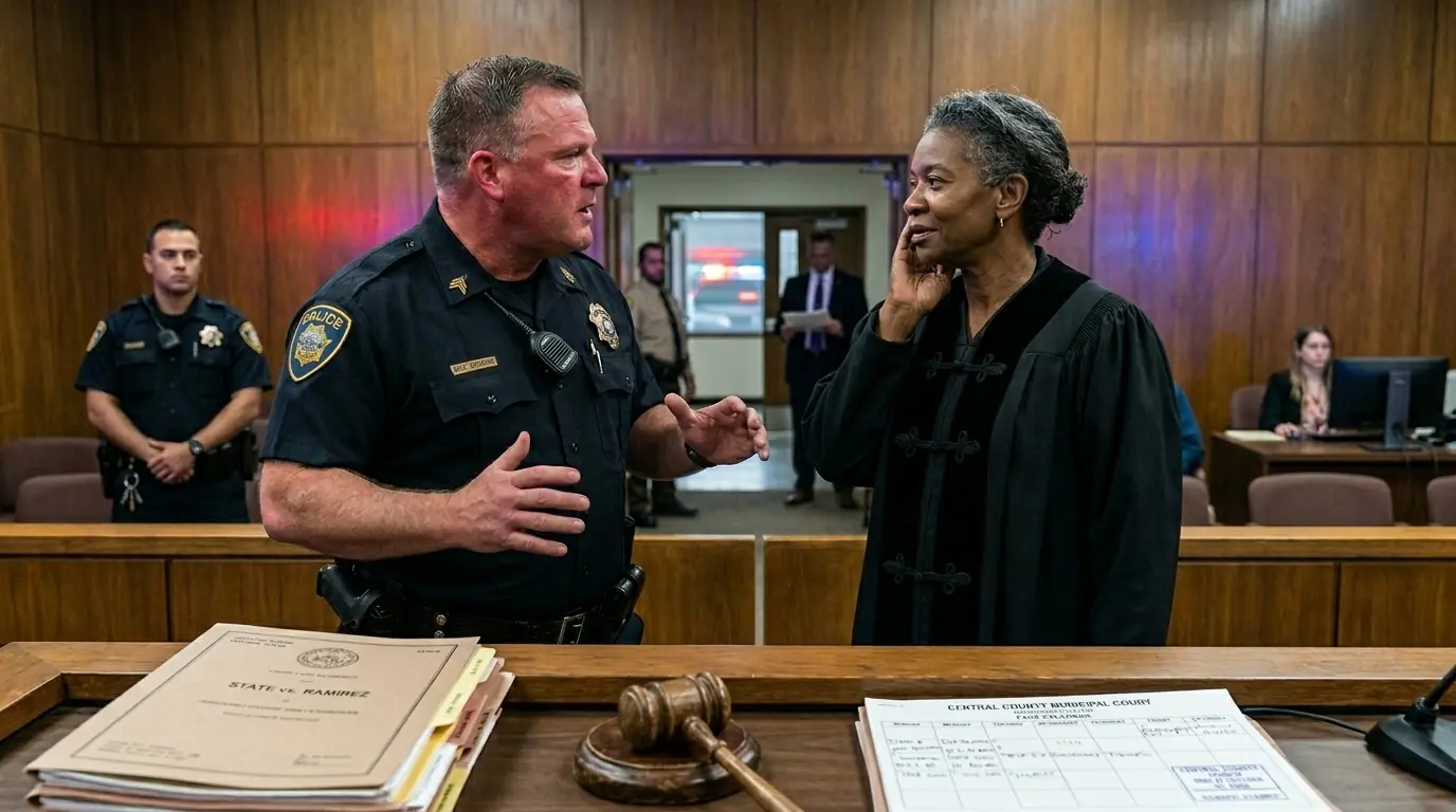 Morrison bangs his gavel. “Ma’am, you don’t need fancy lawyers for a $50 fine. Just plead guilty, and we’ll all go home.”