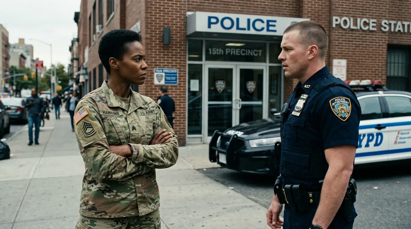 Olivia walks out through the precinct’s front door into evening heat that feels like a slap after the air-conditioned cell. Her wrists are ringed with bruises from handcuffs that were tightened past necessary. Her cheek throbs where it hit asphalt. Her uniform is ruined with dirt and blood and the particular humiliation of being made powerless by people who swore an oath to serve.
