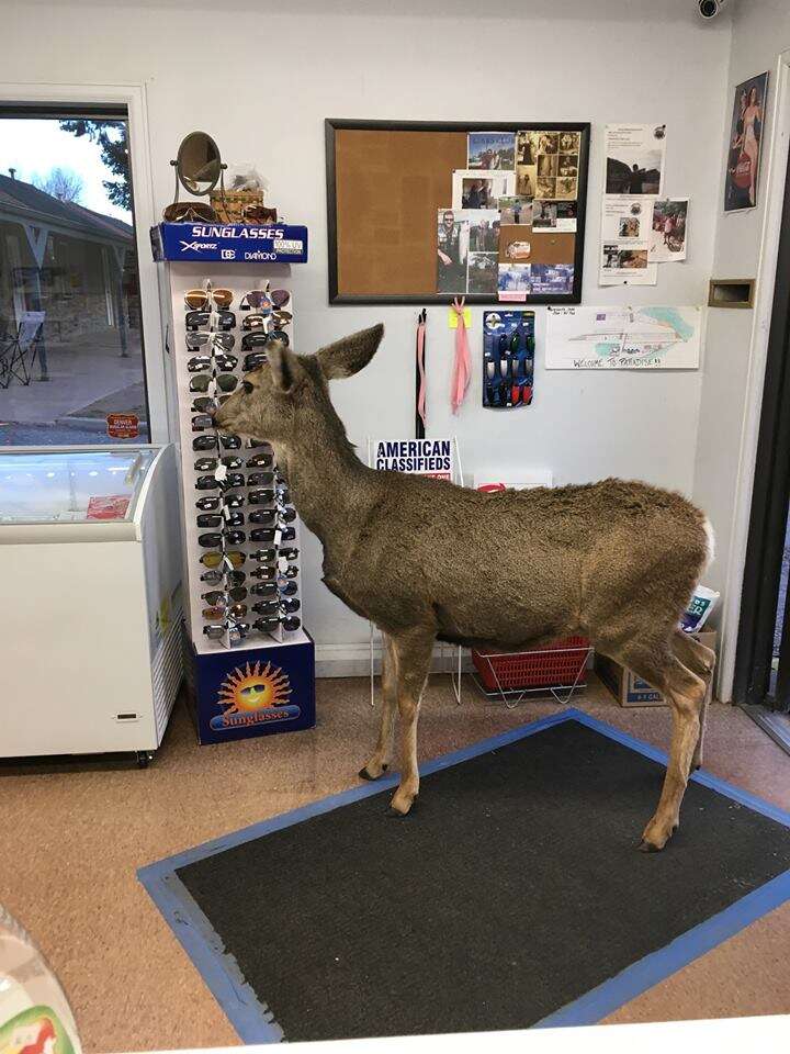 With the holiday season fast approaching, shopping is no doubt high on everyone’s to-do list. And apparently, that includes some rather unexpected customers — like this curious mother deer who decided to check out the local store herself.
