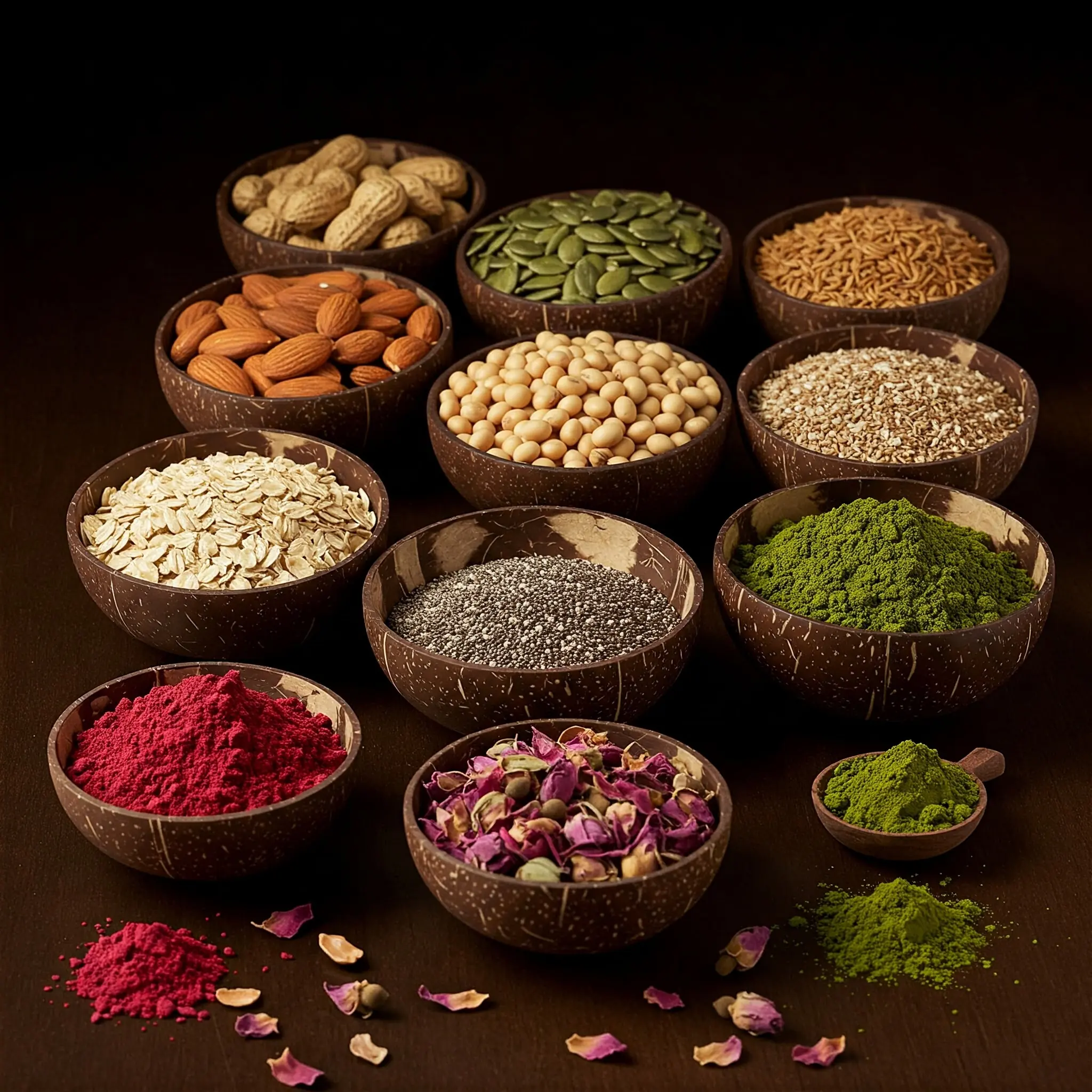 - 1/2 cup Almonds: Rich in vitamin E, almonds help nourish and hydrate the skin while strengthening hair. Vitamin E is an antioxidant that helps protect the skin from damage caused by UV rays and pollution.