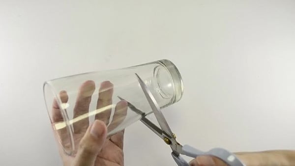 The body of a glass bottle or jar can double as a sharpening tool. Open the scissors and gently “cut” along the curved outer surface of the bottle several times — about 10 gentle snips.