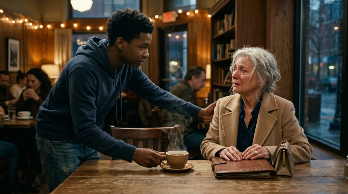 What happened next would be replayed on security cameras across three buildings. Jamal guides Ellen into Cornerstone Café, an upscale spot where coffee costs more than his lunch budget. The hostess, a blonde woman in her twenties with perfectly applied makeup, gives them a look. Wet teenager. Confused elderly woman. Not exactly their usual clientele.