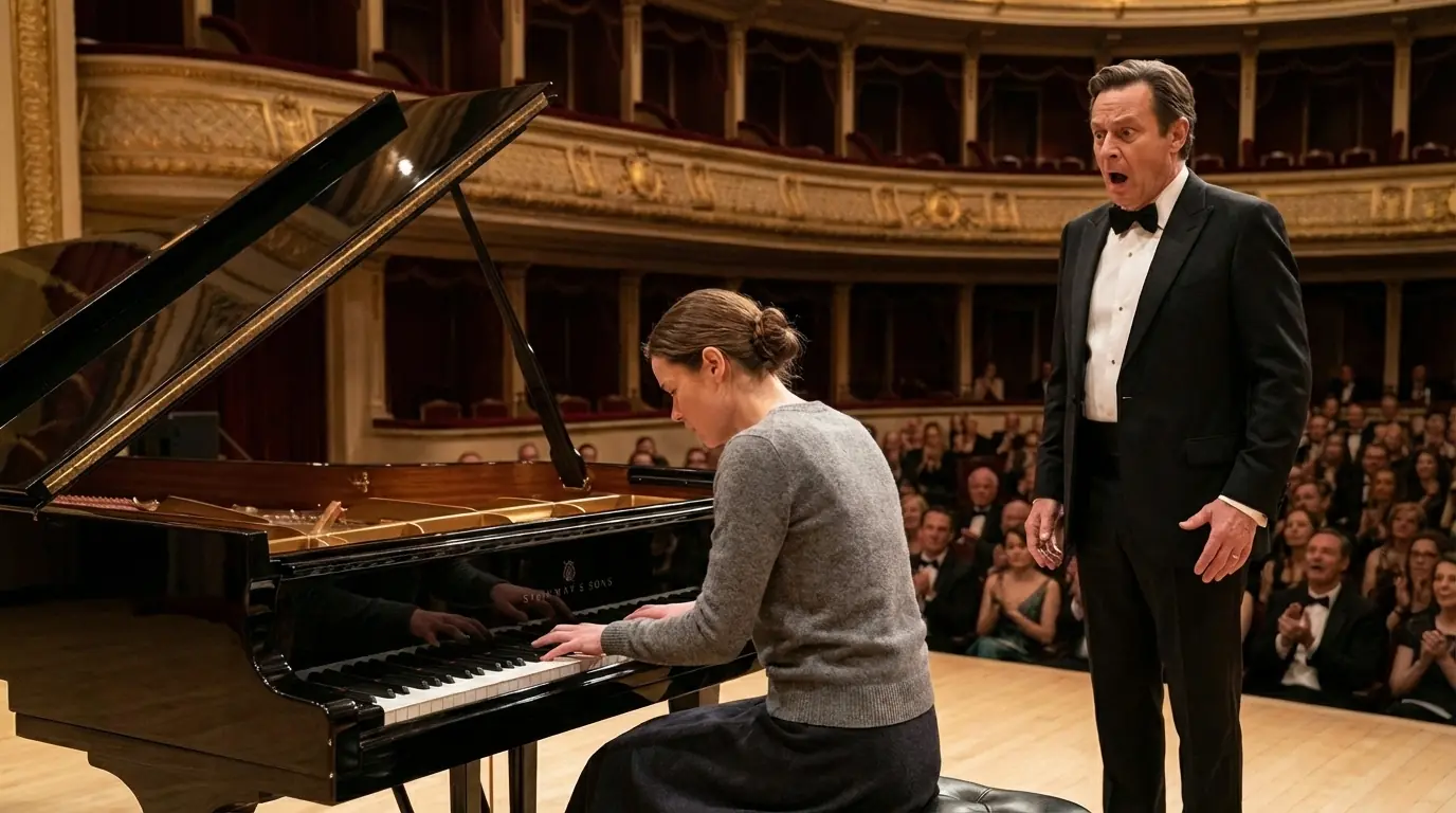 She'd worked at the concert hall for 3 years, arriving early each morning to clean the grand piano, dust the seats, and prepare the space for performances that transported audiences to another world. She loved these evenings, though she always remained invisible.