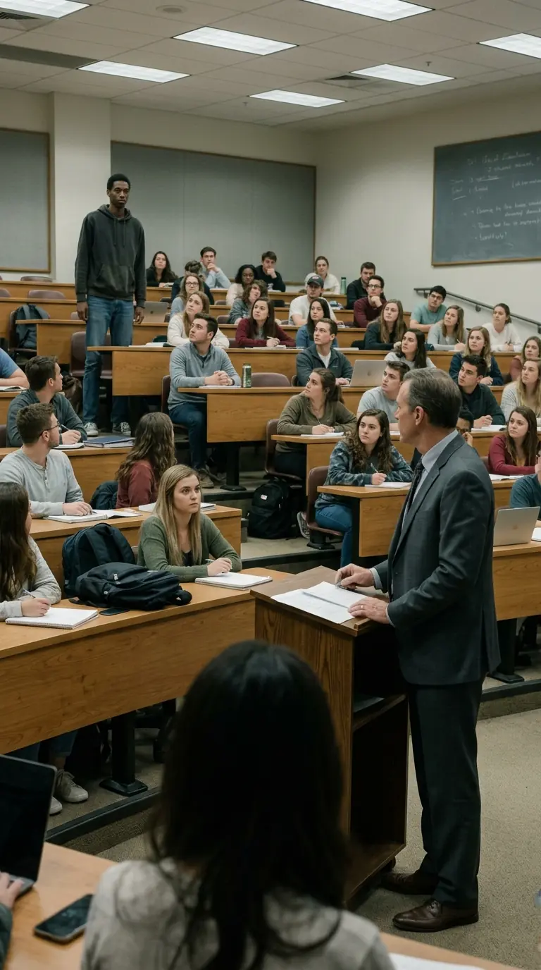 Professor Hartwell's voice echoed through the lecture hall. 23 years of tenure, six figures, untouchable.