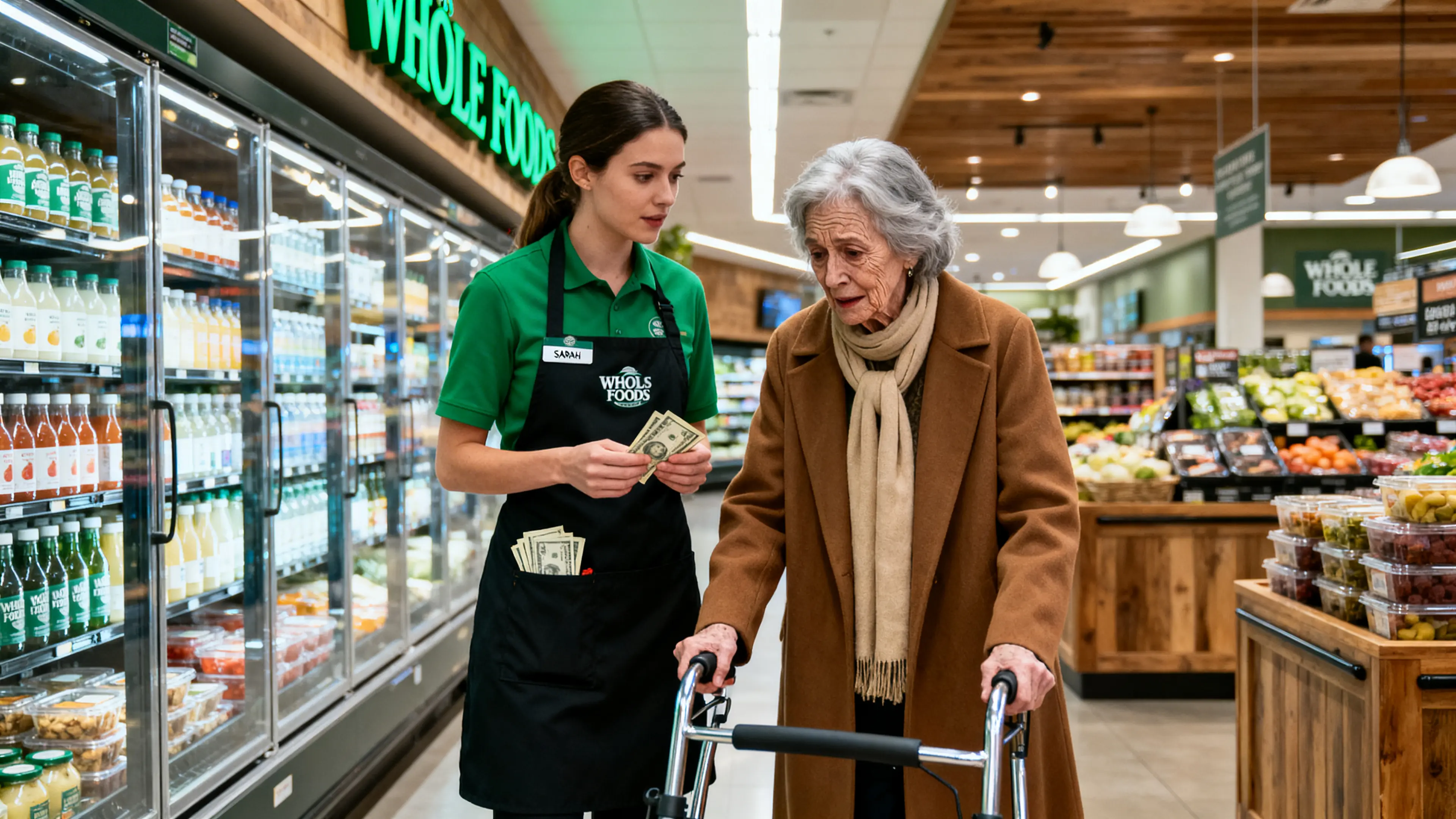 Her name tag read Sarah – Bagger.