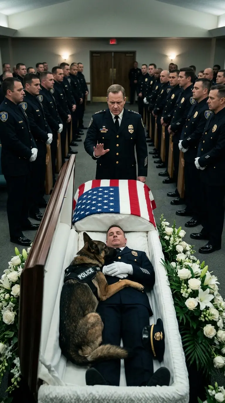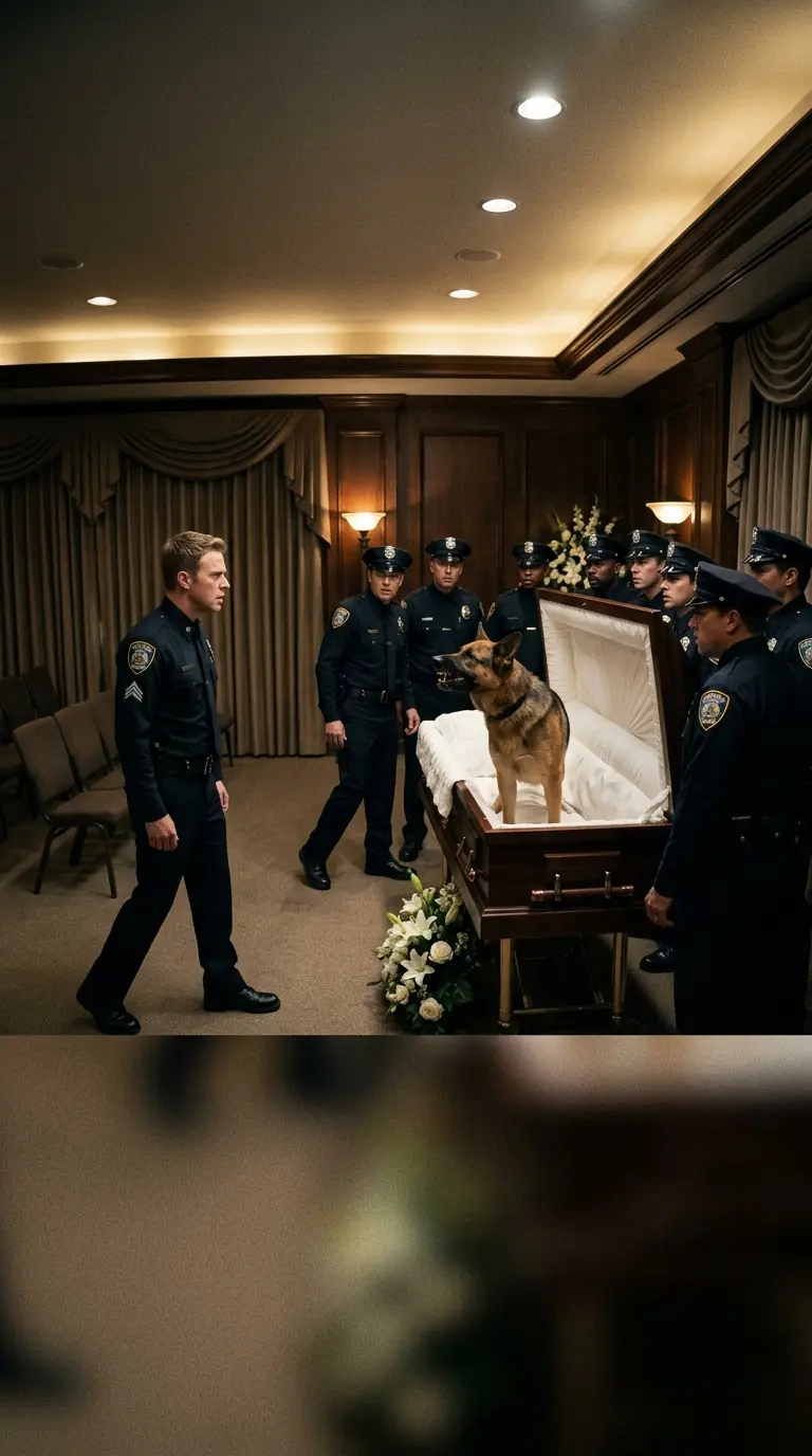A German Shepherd, Officer Daniel's loyal K-9 partner, Rex, suddenly leapt into the coffin and lay across his handler's chest, refusing to move, refusing to let anyone come near.