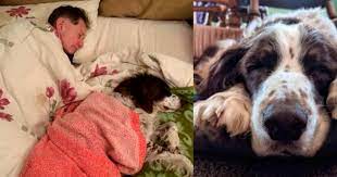 Charlie’s owner, John, faced a heartbreaking realization the day he saw his aging companion struggling to make the nightly climb upstairs. Instead of leaving Charlie behind, John made a heartfelt decision: if Charlie could no longer come to bed with him, then he would bring the bed down to Charlie. Every evening since, John has unfurled a blanket on the living room sofa and lies down beside his old friend, ensuring that Charlie never has to face the night alone.
