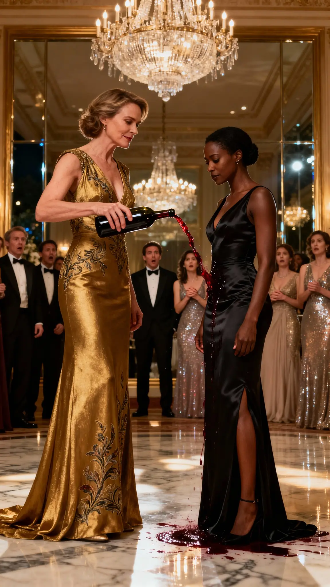 Nova stood still. Wine soaked her curls, her dress, her shoulders.