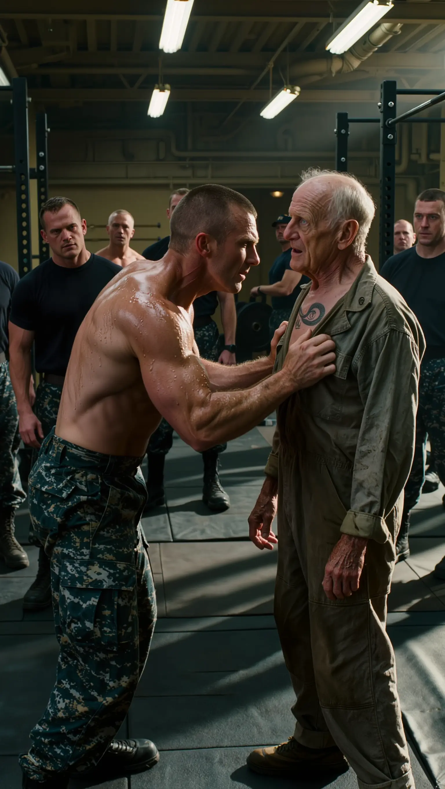 The young SEAL, whose name was Petty Officer Slate, took another step forward, closing the distance until he was nearly chest to chest with the old janitor. The gym, usually a cacophony of clanking weights and grunts of effort, seemed to grow quieter as others took notice.